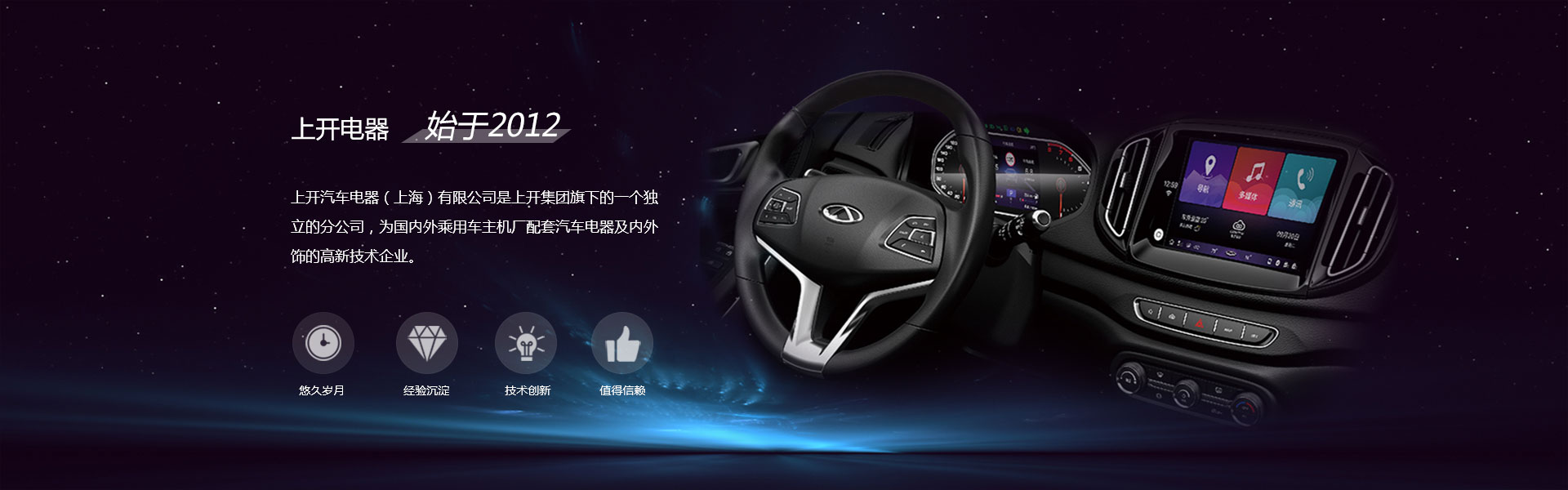上開汽車電器(上海)有限公司是上開集團旗下的一個獨立的分公司,是由國內生產和銷售機電開關、接插件等電器產品的著名廠商——上海永星電子開關有限公司為更好地服務于汽車行業,提高自身的核心競爭力,高薪聘請國內外汽車電器類的專業技術精英及高級管理人才,依托30多年電子開關制作經驗,而成立的一家專門為國內外乘用車主機廠配套汽車電器及內外飾的高新技術企業。